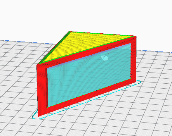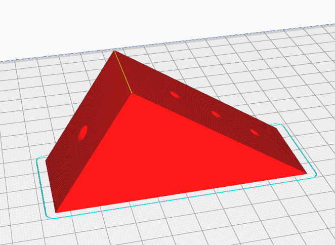 Innerhalb der Slicer-Software stellt sich die Frage, in welcher Ausrichtung man den Regalbodenwinkel drucken möchte. Da 3D-gedruckte Bauteile schichtweise entstehen, ist die Stabilität der Bauteile innerhalb einer Schicht deutlich größer als zwischen den Schichten. Insbesondere Scherkräfte, die auf die Schichten wirken, können ein Bauteil zerbrechen lassen. Für unseren Regalbodenwinkel wäre es daher am besten, ihn auf der Seite liegend zu drucken. Ein Nachteil dieser Ausrichtung ist, dass man dann vermutlich eine Stützstruktur innerhalb des Bauteils benötigt, die die oben liegende Wange beim Druck stabilisiert (Abbildung 3.).